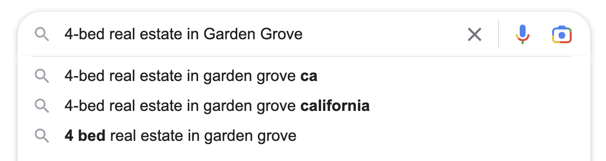 Searching for something like "4-bed real estate in Garden Grove" indicates that the person is likely ready to buy, while a search for just "real estate" might mean they're still early in their research or not even sure what they're looking for yet. So it's definitely worth taking advantage of targeted content and keyword usage to grab those qualified leads!